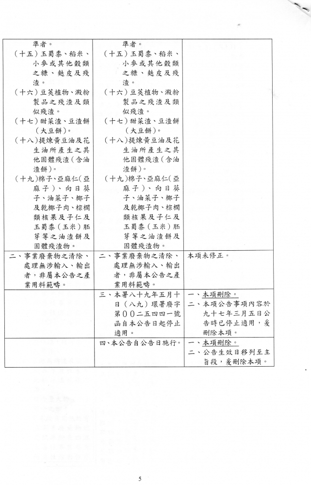 行政院環境保護署檢送「屬產業用料需求之事業廢棄物種類」修正草案預告影本,並附修正草案總說明及公告對照表