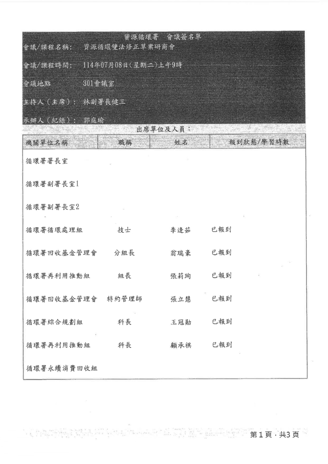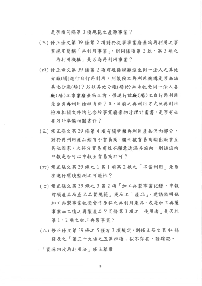 函轉中華民國廢棄物清除處理商業同業公會全國聯合會 主旨:函轉環境部資源循環署114年7月8日召開「資源循環雙法修正草案研商會」會議記錄1份,請轉知各所屬會員,請查照。