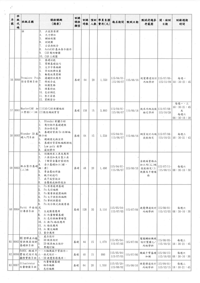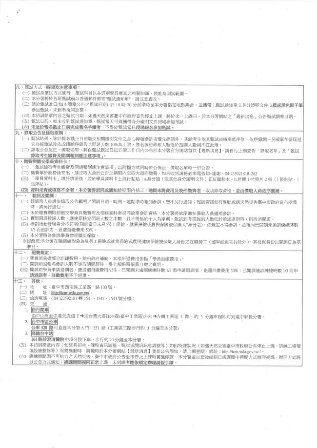 函轉勞動部勞動力發展署中彰投分署 主旨:檢送本分署「115年度自辦在職訓練招訓簡介」1份,惠請轉知各所屬單位並協助公告周知,請查照。