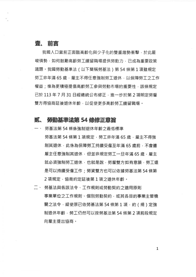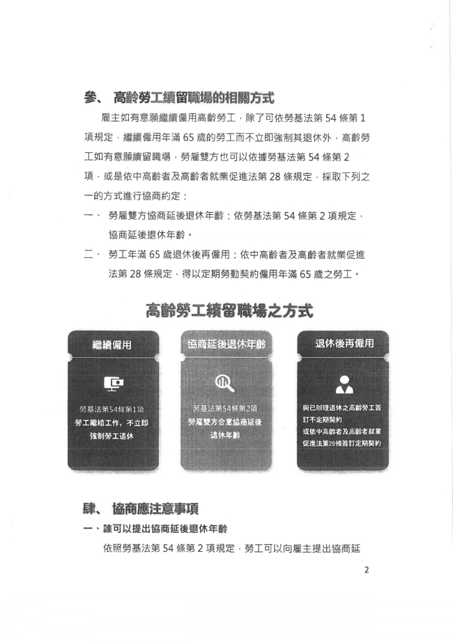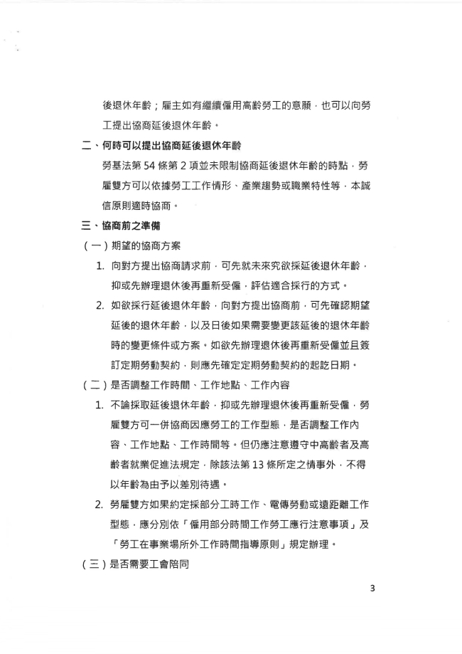 函轉臺中市大臺中商業會 主旨:函轉臺中市政府115年1月20日府授勞動字第11500179681號函,係有關勞動部發布「勞雇雙方協商延後退休年齡及退休後再僱用參考指引」及原函等資料1份,請 查照。