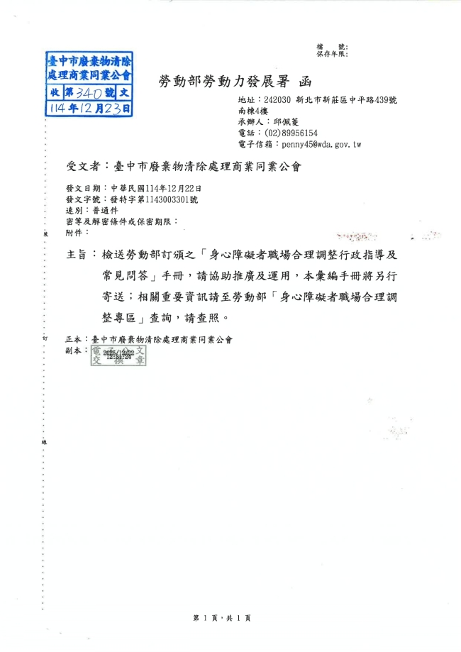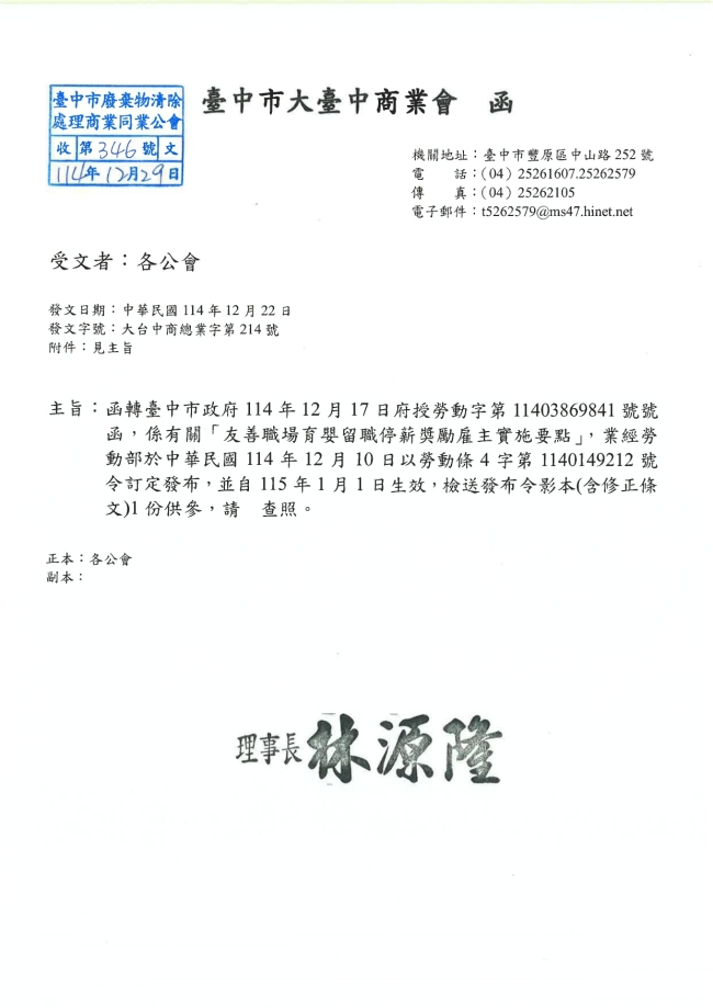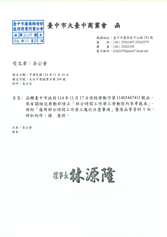 - 115.01.16 本會參加臺中市政府環境保護局工會召開:第四屆第三次會員代表大會。參加人員:丁民杰理事長、賴宗喜理事、劉連卿理事