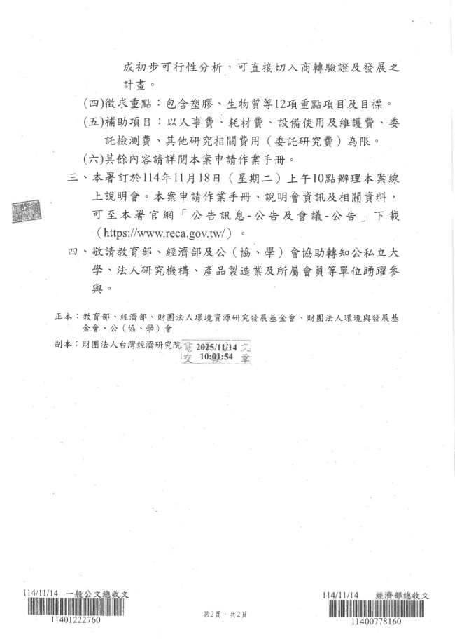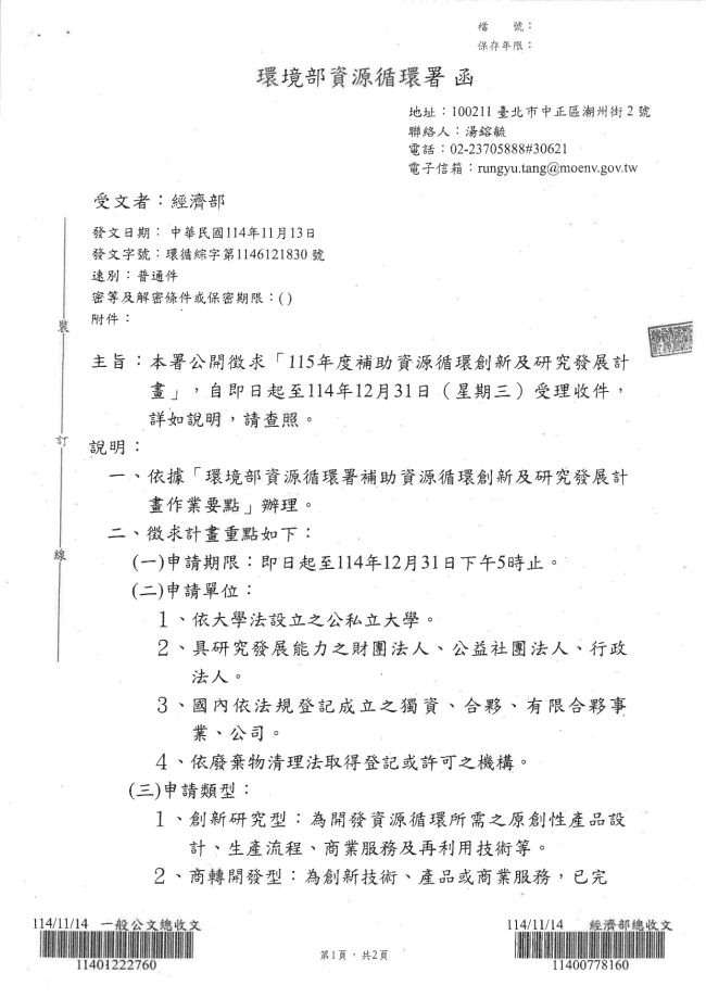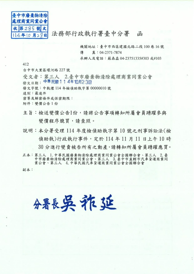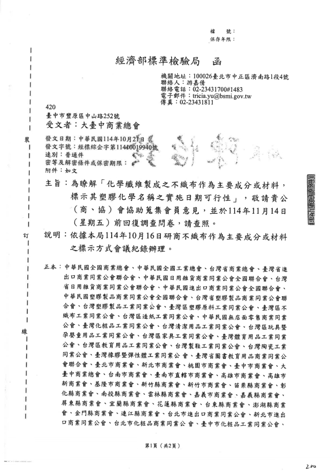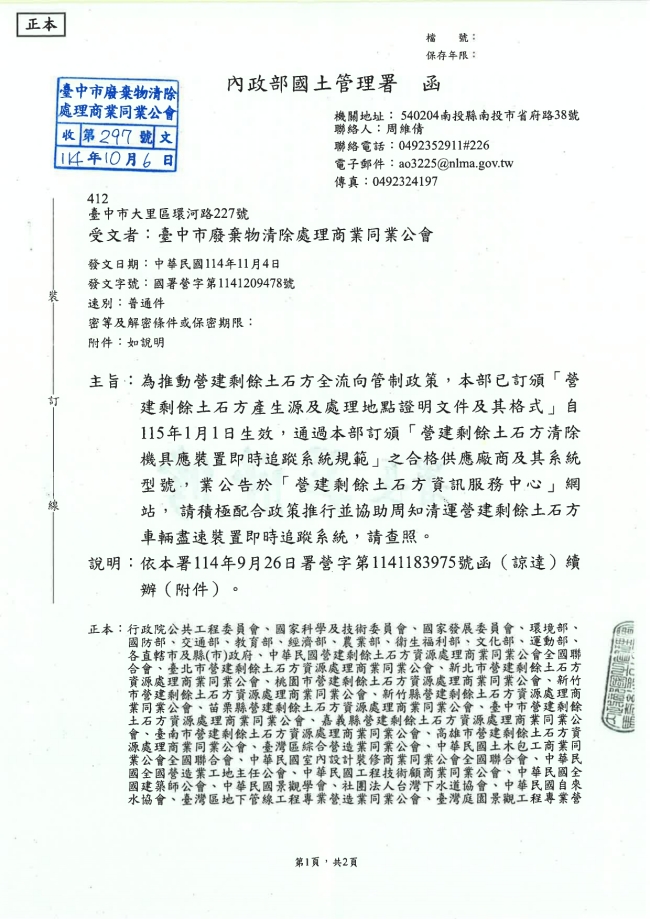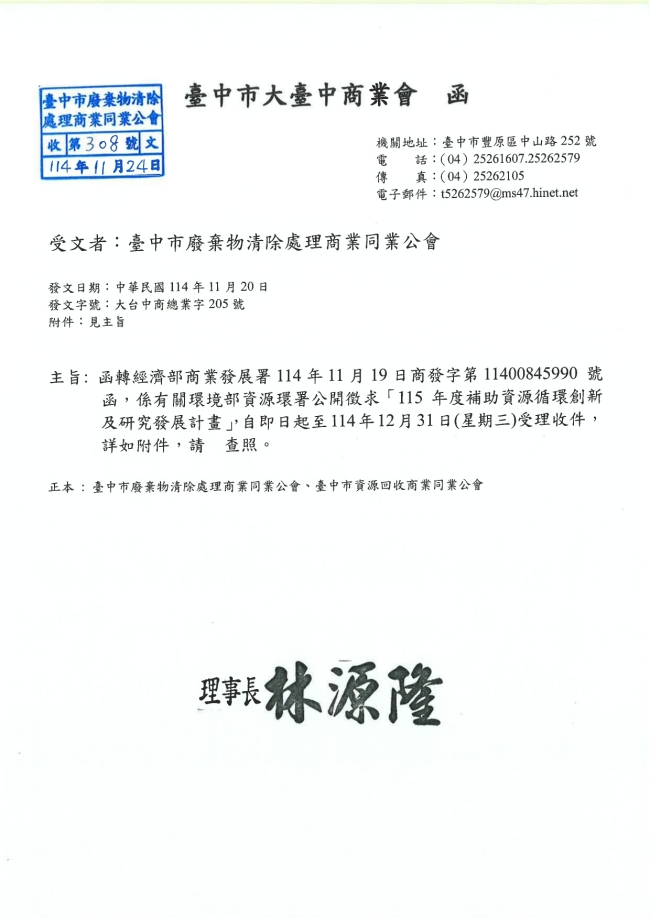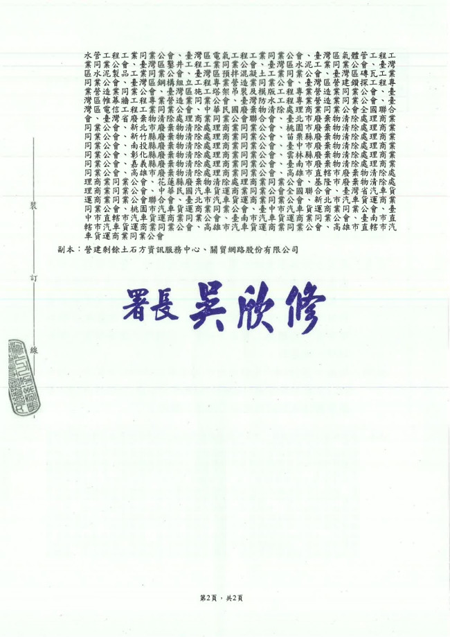 - 115.01.10 本會參加基隆市廢棄物清除處理商業同業公會召開:第10屆第2次會員大會。參加人員:丁民杰理事長、陳家琪秘書長