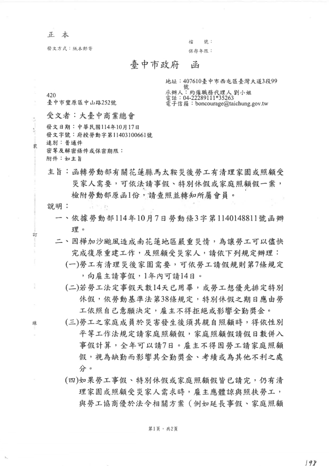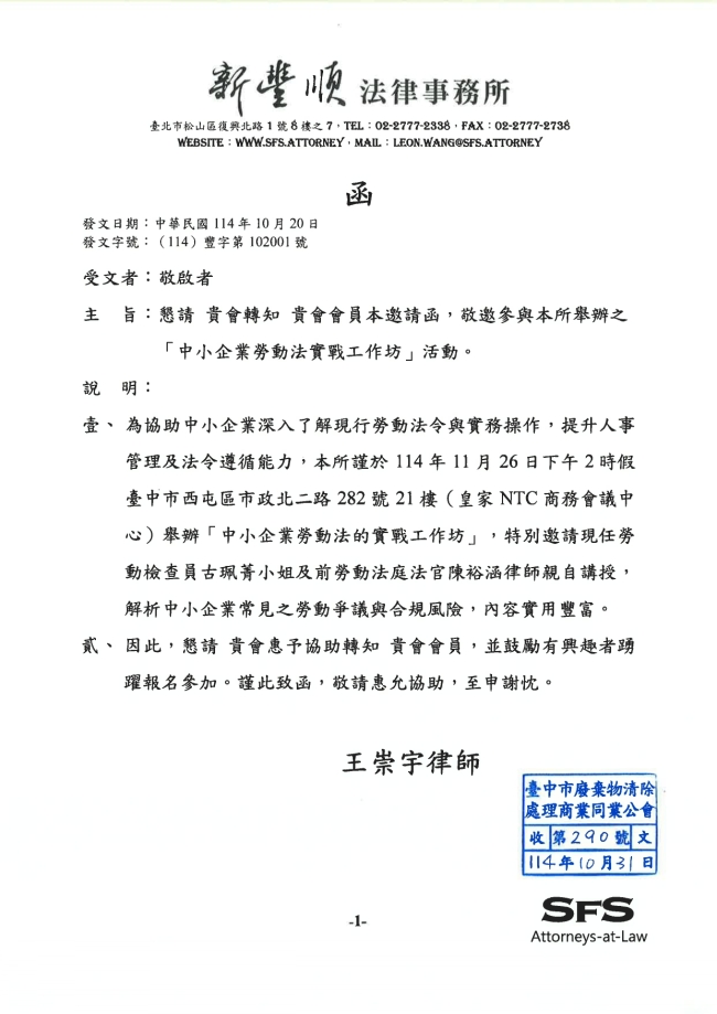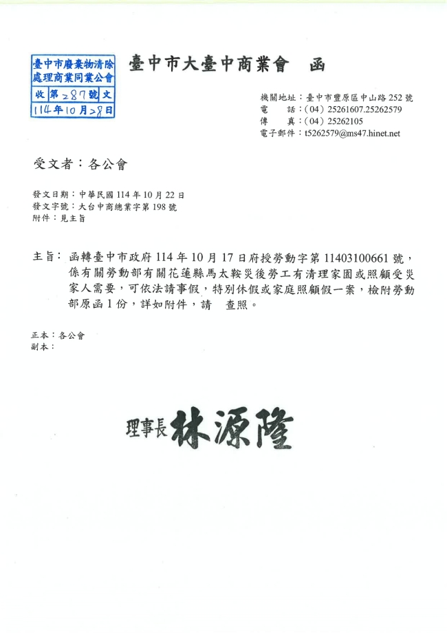 - 115.01.16 本會參加臺中市政府環境保護局工會召開:第四屆第三次會員代表大會。參加人員:丁民杰理事長、賴宗喜理事、劉連卿理事