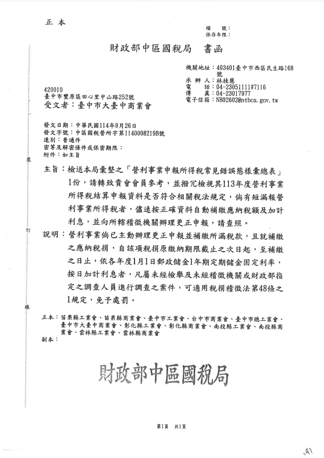 - 115.01.16 本會參加臺中市商業會舉行:臺中市商業界慶祝第七十九屆商人節表揚大會。參加人員:丁民杰理事長、黃其斌榮譽理事長、李吉朗副理事長、劉連卿理事、陳柏諺理事、施培軒理事、陳家琪秘書長、許芷郁副秘書長